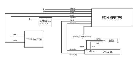 The EDH-25170-XX is for use with an LED load up to 25W at a rated voltage of 170V DC.